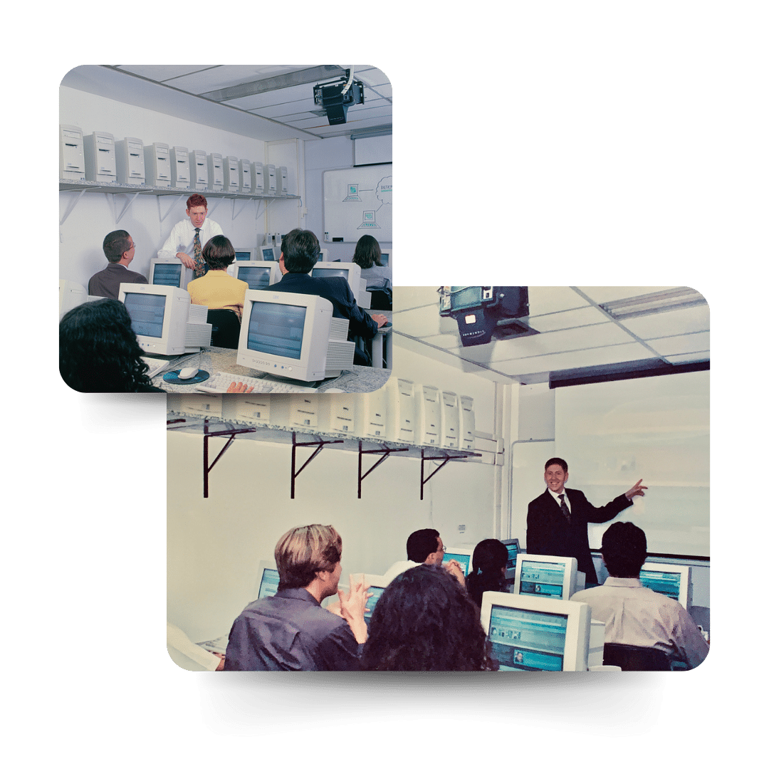 Aulas em laboratórios, usando máquinas virtuais para os alunos experimentarem as tecnologias e softwares mais relevantes do mercado na prática.